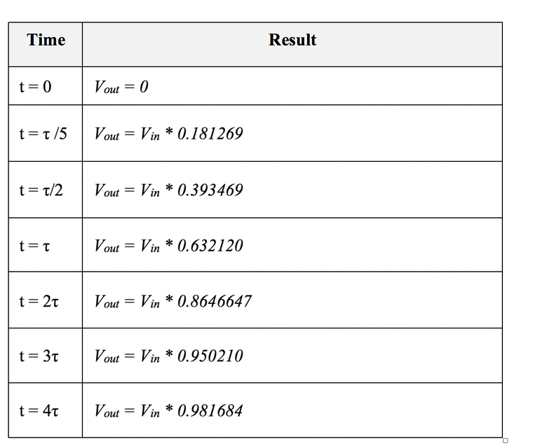 其中τ =時(shí)間常數(shù)。讓我們分析這個(gè)解決方案。在初始時(shí)間t = 0時(shí),當(dāng)輸入脈沖饋入積分元件時(shí),輸出電壓為out = 0,此后Vout  開始以與τ值成反比的速度增加,并達(dá)到以下值(圖4