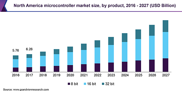 2019年,單片機(jī)開(kāi)發(fā)市場(chǎng)規(guī)模為208.2億美元,預(yù)計(jì)從2020年到2027年,復(fù)合年增長(zhǎng)率將達(dá)到10.8%。2019年,全球單片機(jī)出貨量超過(guò)300億個(gè)。汽車,消費(fèi)電子產(chǎn)品的顯著增長(zhǎng),而醫(yī)療保健行業(yè)可以歸因于產(chǎn)品需求的增長(zhǎng)。單片機(jī)制器單元(MCU)主要用于需要用戶充分控制的設(shè)備中。行業(yè)競(jìng)爭(zhēng)的加劇導(dǎo)致產(chǎn)品價(jià)格低廉,預(yù)計(jì)將進(jìn)一步刺激需求。隨著智能電網(wǎng)的出現(xiàn),人們對(duì)智能能源管理的認(rèn)識(shí)不斷提高,有望進(jìn)一步推動(dòng)對(duì)MCU的需求。