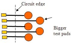 目前,飛行探針或什至是剛性探針(釘床)技術的下限為2-3mils。我們預計隨著時間的推移,它會降低,因為必要時需要更小的平臺。如果您的微電路具有較小的點(例如邊緣條連接器),則將電路以外的線路延伸到3-4 mil焊盤是明智的。