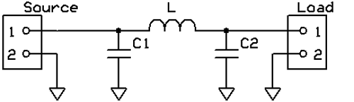 的PI濾波器是一個(gè)非常通用的匹配電路,它由3層反應(yīng)性的元件,通常是兩個(gè)電容器和一個(gè)電感器。與L濾波器不同,L濾波器只有L和C的一種組合會(huì)在給定的頻率下提供所需的阻抗匹配,而PI濾波器允許C1,C2和L的多種組合來實(shí)現(xiàn)所需的阻抗匹配,每種組合都具有不同的Q.