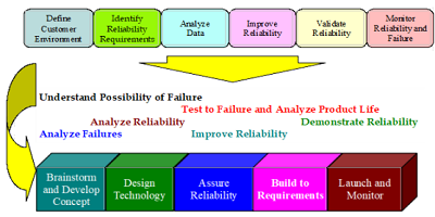DfR中使用的結構化流程考慮了從設計流程的一端到另一端可能發生的所有類型的更改。特定數據控制著流程的各個方面。結構還包括在設計中使用工具和方法以確保可靠性的順序。取決于項目的范圍和要求,該序列可以線性發生,也可以具有彼此并行發生的一些活動。順序也可能從一個電路或系統的設計到另一個電路或系統的設計不同。