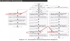 下圖顯示了S12核心CPU中斷堆棧過程,按下CCR?寄存器,關閉全局中斷處理,箭頭中的紅色圓圈,硬件設置了I-BIT(禁用I位外設中斷),S-BIT(禁止),低功耗指令STOP)和X位(禁止XIRQ中斷)(注:此過程是用戶無法控制且不可中斷的“原子”操作)