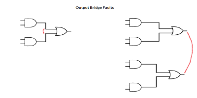 輸入橋接故障時,邏輯門的兩條輸入線短路。代替在輸入線上找到正常的一致邏輯,出現兩個不同的邏輯狀態。對于TTL設備,受影響的輸入線下降到零。對于CMOS IC,受影響的線路輸入為邏輯1。如果在TTL器件和CMOS器件之間建立了橋梁,則信號值通常取TTL器件的值。