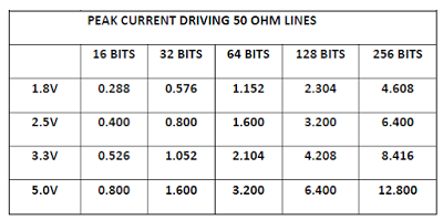 表1.當所有線路從0變為1時,各種寬度數據總線的峰值電流