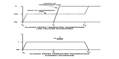 圖2.串聯終端傳輸線的電壓和電流波形