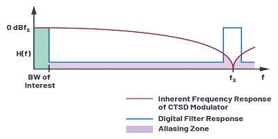 對(duì)于連續(xù)時(shí)間sigma-delta(CTSD)ADC,衰減是固有的,因此我們不需要任何抗混疊濾波器。