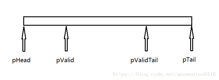 4、pValidTail 是使用區(qū)域的的結(jié)尾指針,存數(shù)據(jù)時的起點,當存數(shù)據(jù)時,pValidTail要發(fā)生偏移