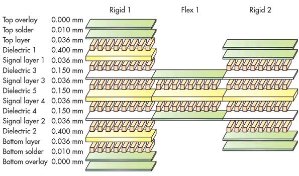 圖2.該板定義了13個層,其中包括兩個剛性層和一個柔性層。