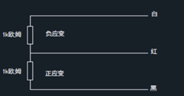 注:負應變電阻,當收到壓力或拉力時,電阻變小。