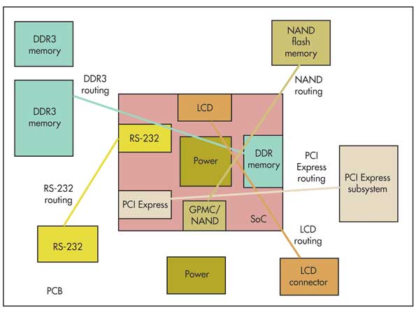 如果一個特定組件具有嚴格的布線約束,則可能會限制其他組件在特定區域內的放置。例如,諸如DDR3的高速接口需要恒定的參考平面并與其他接口有效隔離。這將限制其他設備在DDR3存儲設備一定距離內的放置。